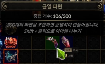 균열 파편 300개를 모으면 균열석이 만들어집니다.