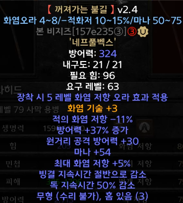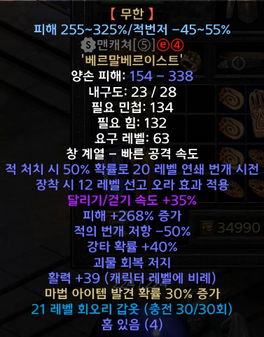 (저는 1투창과 20공속, 번저 30%가 크랩으로 떠서 임시로 이거 착용하고 있습니다)