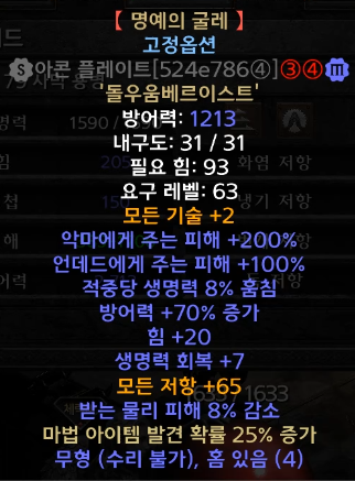 (피흡과 모든 저항, 물피감소, 악마피해를 위한 명굴 사용)