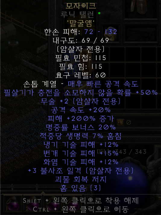 디아블로2 레저렉션 모자이크씬(어쌔신, 암살자) 육성/세팅